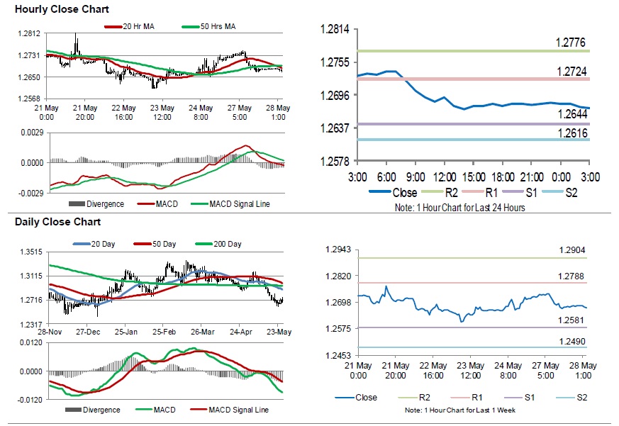 In the Asian session, at GMT0300, the pair is trading at 1.2672, with the GBP trading 0.08% lower against the USD from yesterday’s close.