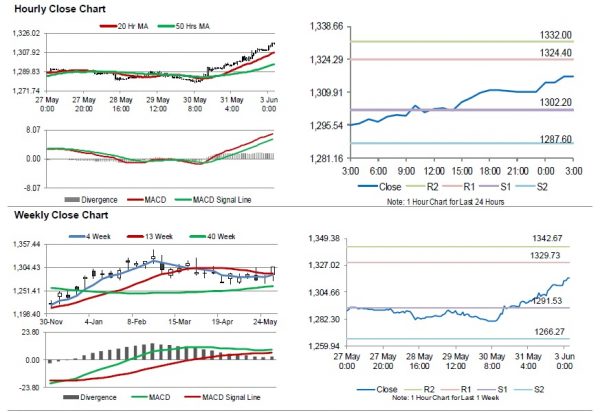 In the Asian session, at GMT0300, the pair is trading at 1316.80, with gold trading 0.46% higher against the USD from yesterday’s close.