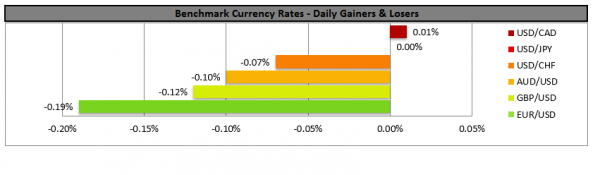 The USD seems to stabilize ahead of the Feds’ meeting next week, yet the week may be ending quit favorably for the greenback. Investors are expected to turn their attention towards the Fed’s meeting next week, for any hints about a possible rate cut. Analysts tend to point out that the market may be expecting dovish comments ahead of the meeting from Fed officials, which could subdue the USD. It should be noted though, that the poor performance of other currencies seems to keep the USD afloat for the time being. Also further tensions in the US-Sino relationships remain possible, especially ahead of the G20 meeting in Osaka, near the end of the month. We could see the USD be somewhat data driven today and new fundamental headlines could also influence its direction. EUR/USD dropped yesterday, aiming for the 1.1260 (S1) support line. We could see the pair dropping even further today, should today’s financial releases favor the USD. Should the bears take control over the pair’s prices, we could see them braking the 1.1260 (S1) support line and aim for the 1.1220 (S2) support level. If the bulls take over, we could see the pair’s price action, breaking the 1.1300 (R1) resistance line and aim for the 1.1340 (R2) resistance barrier.