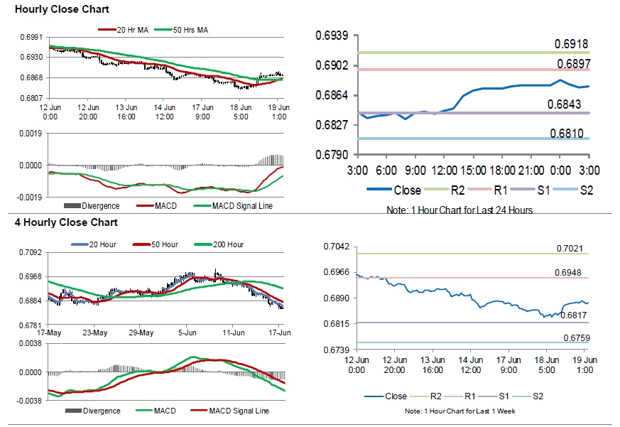 In the Asian session, at GMT0300, the pair is trading at 0.6875, with the AUD trading marginally lower against the USD from yesterday’s close.