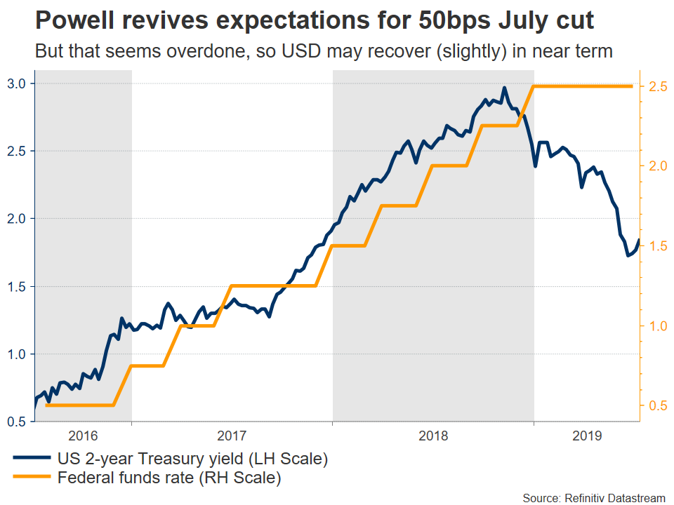 Admittedly though, there’s not much that can stop the Fed from cutting rates in July, even if these numbers are stronger than expected. Chairman Powell made it painfully clear that the Fed will deliver an ‘insurance cut’, even though the domestic economy doesn’t seem to be in dire need of monetary stimulus yet. His proactive stance is likely a signal of how aggressively the Fed will react moving forward – policymakers don’t want to be caught ‘behind the curve’ in a recession.