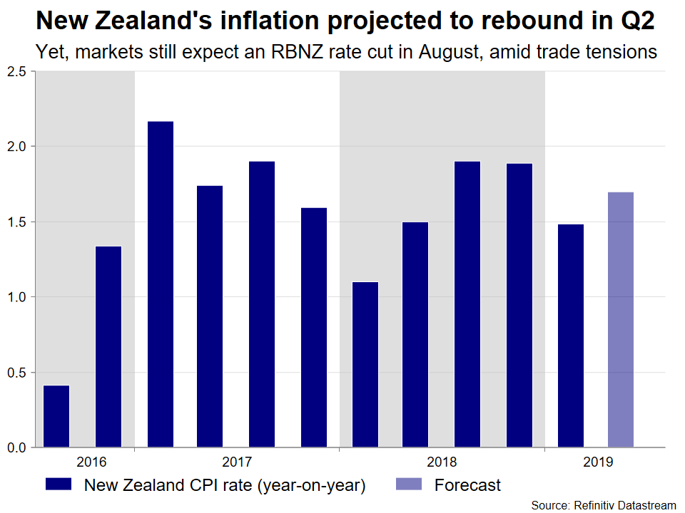 The main event in New Zealand will be the release of inflation data for Q2 on Tuesday. The RBNZ already cut rates back at its May meeting and markets are pricing in a ~73% chance for another move at the August gathering, so these figures will be crucial in shaping expectations.