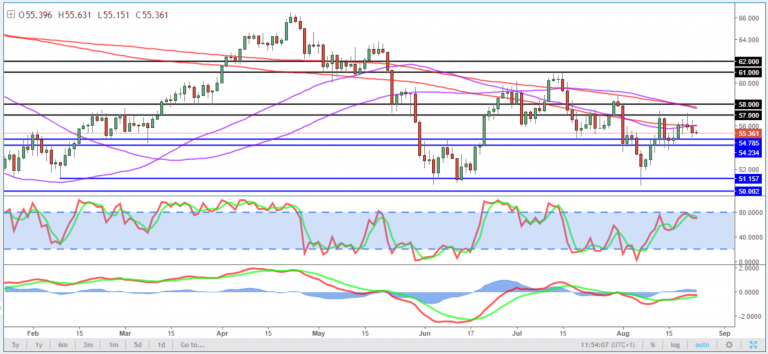 Oil appears to be waiting nervously for the Powell appearance, not sharing the optimism it seems that equity traders are showing. We’ve seen a rebound in recent weeks but it’s far from convincing. If Powell triggers the recession warnings again today, oil prices could tumble and head back towards the summer lows as traders lose hope that the Fed has their backs. Who knows, maybe Powell is as obsessed with the yield curve inversion as the rest of us and will finally concede. I’m not optimistic though.