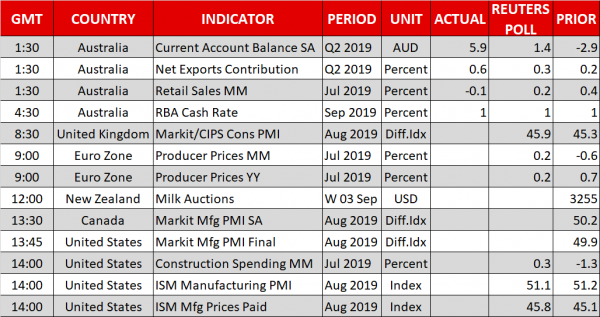 Traders will be watching the second quarter GDP estimates due out of Australia early tomorrow morning for clues as to how soon the next rate cut will come. Before that, however, the ISM manufacturing PMI out of the US will be eyed as concerns mount that America’s manufacturing sector could soon join other nations in entering a contraction.
