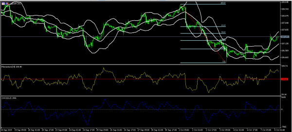 The USD/JPY pair rose to a high of 107.40 after Japanese data was released. On the hourly chart, this price is between the 50% and the 38.2% Fibonacci Retracement level. The price is slightly lower than the upper line of the Bollinger Bands while the momentum indicator has increased to the highest level in months. The Chaikin oscillator has moved above the neutral line. The pair could continue moving higher to the 50% Fibonacci retracement level of 107.50.