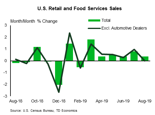 We expect another firm 0.4% increase in retail sales for September on the back of an also solid gain in sales for the key control group (+0.4% m/m), as consumer fundamentals remain sound (a still-healthy labor market, solid real wages and firm confidence levels). A steady rise in core sales coupled with another solid gain in auto purchases should more than offset a decline in sales at gasoline stations, which reflects a new drop in gasoline prices in September.