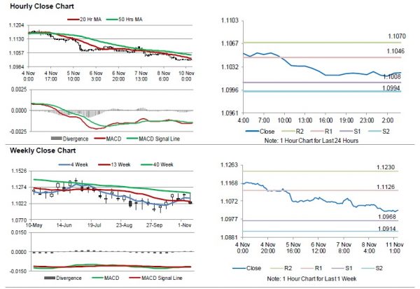 The pair is expected to find support at 1.1008, and a fall through could take it to the next support level of 1.0994. The pair is expected to find its first resistance at 1.1046, and a rise through could take it to the next resistance level of 1.1070.
