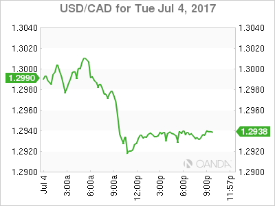 The USD/CAD lost 0.493 in the last 24 hours. The currency pair is trading at 1.2936 during the Fourth of July holiday in the United States has reduced liquidity. The CAD kept rising despite a holiday on Monday due to Canada Day, with the extra long weekend limiting the action on the currency pair. Governor Poloz is making sure the market receives the July 12 signal loud and clear. Prior to June 11 the market was not considering a change in monetary policy this year. The BoC was proactive in 2015 with two rate cuts to ease the impact of the impending drop in oil prices. Now the central bank has deemed those cuts served their purpose and with energy enjoying some stability and the U.S. Federal Reserve already up to a 100–125 basis points range with at least another to come, the BoC quickly put on the table a rate hike that could come as early as the next meeting on July 12.