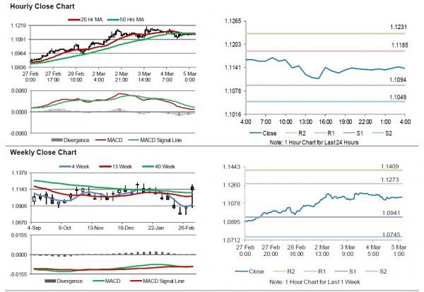 The pair is expected to find support at 1.1094, and a fall through could take it to the next support level of 1.1049. The pair is expected to find its first resistance at 1.1185, and a rise through could take it to the next resistance level of 1.1231.