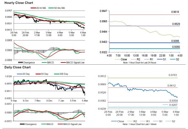 The pair is expected to find support at 0.9395, and a fall through could take it to the next support level of 0.9350. The pair is expected to find its first resistance at 0.9529, and a rise through could take it to the next resistance level of 0.9618.