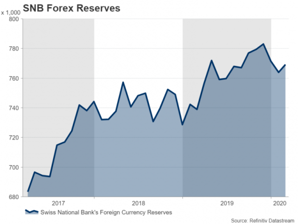 The Swiss National Bank also meets on Thursday but is the least likely of the three central banks to make any changes to its policy. At -0.75%, Switzerland already has the lowest interest rate in the world and although the country has been hit hard by the coronavirus, the SNB has another weapon at its disposal – FX intervention. The SNB’s foreign exchange reserves were up slightly in February, indicating that it was intervening to keep the safe-haven Swiss franc down, particularly against the euro, as risk sentiment soured due to the virus outbreak.