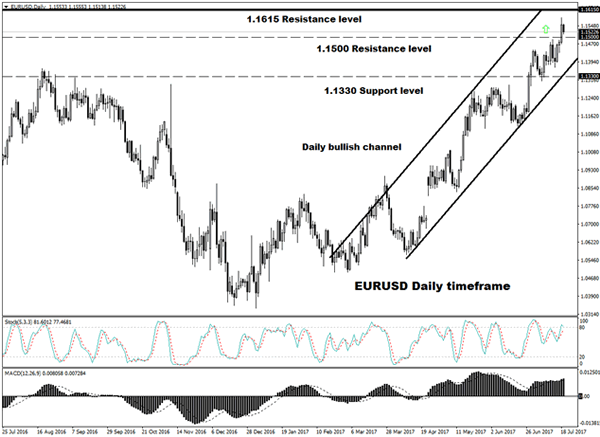 From a technical standpoint, the EURUSD is heavily bullish on the daily charts. The breakout and daily close above 1.1500 could encourage a further incline higher towards 1.1615.