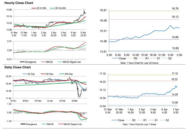 In the Asian session, at GMT0300, the pair is trading at 15.51, with silver trading 0.36% higher against the USD from yesterday’s close.