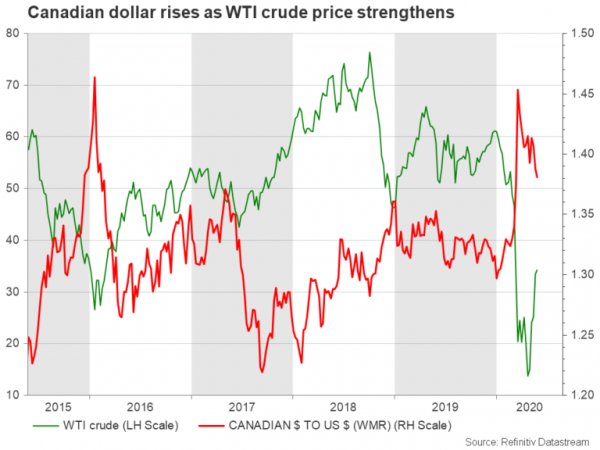 The Canadian economy was on a slippery road before Trudeau’s government put consumers in isolation and shut down businesses to deal with the Covid-19 outbreak in mid-March. Following December’s peak of 0.3% m/m, GDP growth eased to 0.2% in January and stagnated in February as the rapid spread of the virus in the rest of the world caused disruptions in international supply chains and raised concerns that demand for oil – one of Canada’s major export – may significantly ease, with the Saudi-Arabia- Russia dispute adding more pressure at that time.
