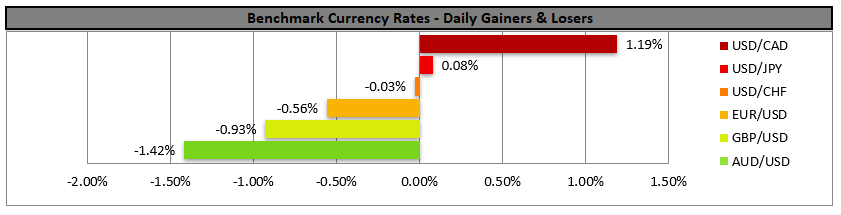 The USD gained against some of its counterparts yesterday, as its safe haven qualities were on display once again. It was characteristic that the greenback flattened against other safe haven currencies such as the Yen and Swiss Franc, while strengthened against the Aussie and the Loonie, typical commodity currencies as well as against the EUR and the pound. Analysts tend to note that the gloomy financial projections released from the Fed on Wednesday, may have scared investors and created increased demand for safe havens, while at the same time causing stock markets to fall. Without disputing it, we would also like to note that the USD may have been undervalued since the beginning of the week, as we had noted a week ago. The new rise of COVID 19 cases and headlines surfacing about new lockdown measures in various states of the US such as California, may have also contributed increased safe-haven inflows for the USD. Should investors’ flight to safety continue we could see the USD gaining further ground in the next couple of days. USD/CAD rallied yesterday breaking the 1.3520 (S2) resistance line as well as the 1.3620 (S1) resistance level, both now turned to support. Besides USD fundamentals as analyzed above, the CAD side seemed to weaken as oil prices dropped yesterday, fueling the rally further. We currently maintain the bullish outlook for the pair as long as the pair follows the upward trendline incepted since the 10th of June. Please note though that we would not be surprised to see the prementioned trendline shifting to the right, as the ascent of the pair was quite steep, and some correction seems allready to be present. If the pair finds fresh buying orders along its path, we could see it breaking the 1.3730 (R1) line aim for the 1.3830 (R2) level. Should the bears take charge of the pair’s direction, we could see it breaking the 1.3620 (S1) line and aim for the 1.3520 (S2) barrier.