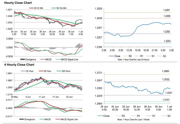 The pair is expected to find support at 1.2292, and a fall through could take it to the next support level of 1.2203. The pair is expected to find its first resistance at 1.2436, and a rise through could take it to the next resistance level of 1.2491.