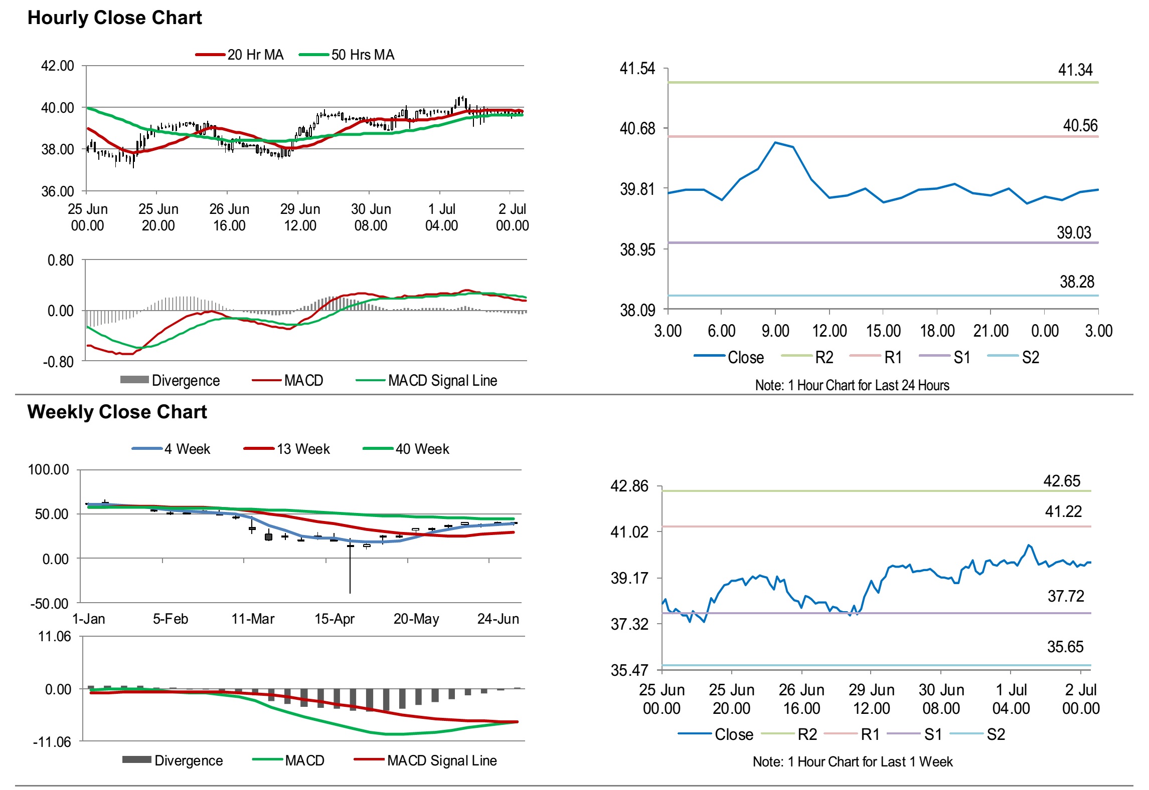 In the Asian session, at GMT0300, the pair is trading at 39.79, with oil trading 0.48% higher against the USD from yesterday’s close.