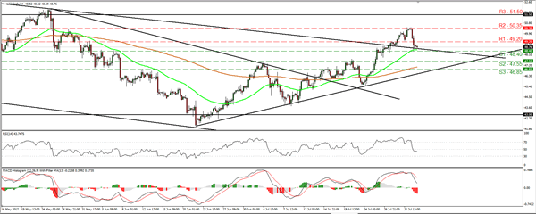 Oil prices pulled back yesterday, following several reports that OPEC’s production rose in July, despite May’s output-cut deal. This suggests that either some countries pumped more than what was agreed in May, or the nations that were exempted from that deal (Libya and Nigeria) continued to raise their production. On top of that, the weekly US API data showed that inventories rose, which added further fuel to WTI’s slide. Today’s official EIA inventory data could also be pivotal for the near-term path of oil.