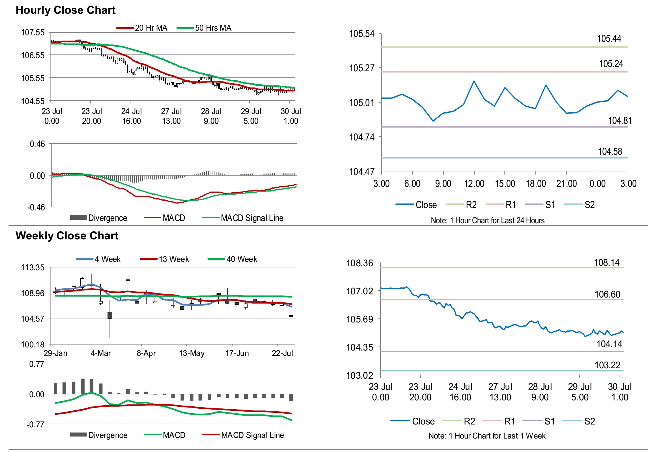 The pair is expected to find support at 104.81, and a fall through could take it to the next support level of 104.58. The pair is expected to find its first resistance at 105.24, and a rise through could take it to the next resistance level of 105.44.