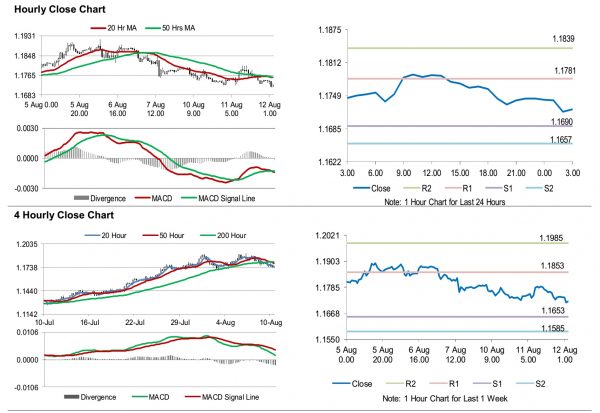 The pair is expected to find support at 1.1690, and a fall through could take it to the next support level of 1.1657. The pair is expected to find its first resistance at 1.1781, and a rise through could take it to the next resistance level of 1.1839.