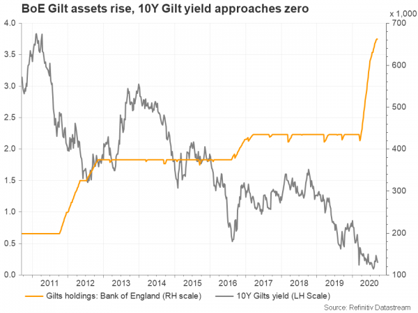 On the other hand, the BoE could keep bond yields in the positive area if it increases the amount of asset purchases instead, with the BoE chief admitting recently that the QE program could be a more useful tool. A stronger forward guidance could be a possible scenario too following similar actions by other key central banks.