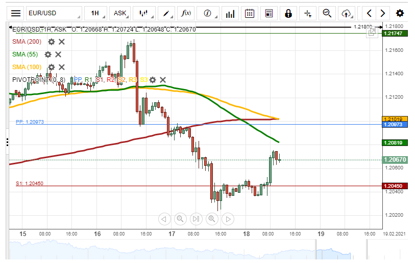 During Wednesday morning hours, the EUR/USD currency pair bounced off the weekly S1 at 1.2045.