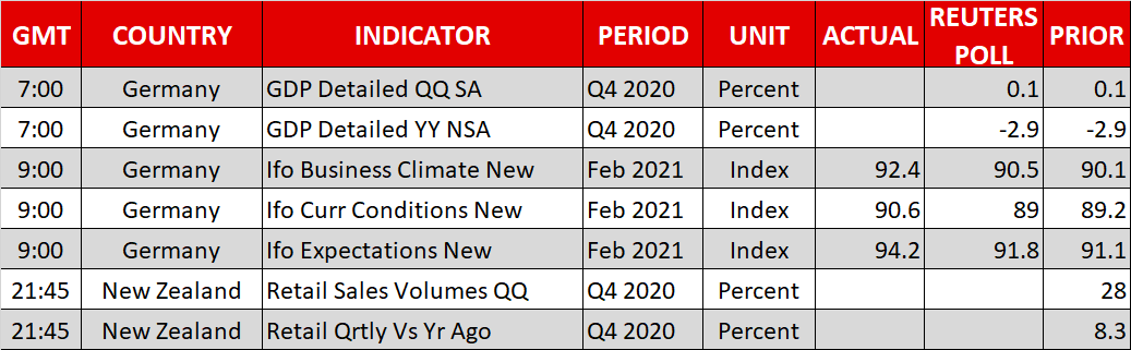 Staying in the FX sphere, the British pound and the Australian dollar have been the biggest winners lately. The pound has been on a rampage in recent weeks, showing a remarkable ability to absorb bad news without even a scratch. The incredible pace of vaccinations continues, allowing the economy to re-open without the risk of having to shut down again, in contrast to the euro area.