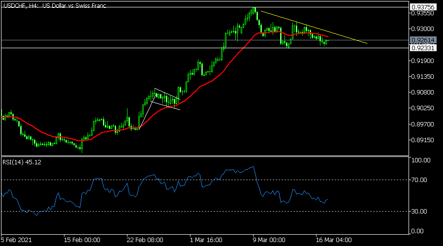 The USD/CHF pair declined slightly to 0.9233. On the four-hour chart, the price has formed a descending triangle pattern, whose support is at 0.9233. It has also moved slightly below the 25-day simple moving average (SMA) while the Relative Strength Index (RSI) has declined from 87 to 44. In technical analysis, a descending triangle is usually a bearish sign. As such, there is a possibility that the price will break-out lower.