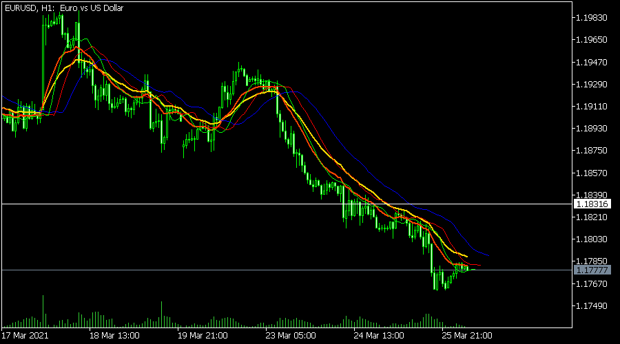The EUR/USD pair rose to an intraday high of 1.1780. On the hourly chart, this pair seems to be forming a bearish flag pattern. It is also slightly below the short and medium moving averages and the important resistance at 1.1800. It is also slightly below the alligator indicator that is shown in blue. Therefore, the pair may resume the downward trend with the next key target being at 1.1700.
