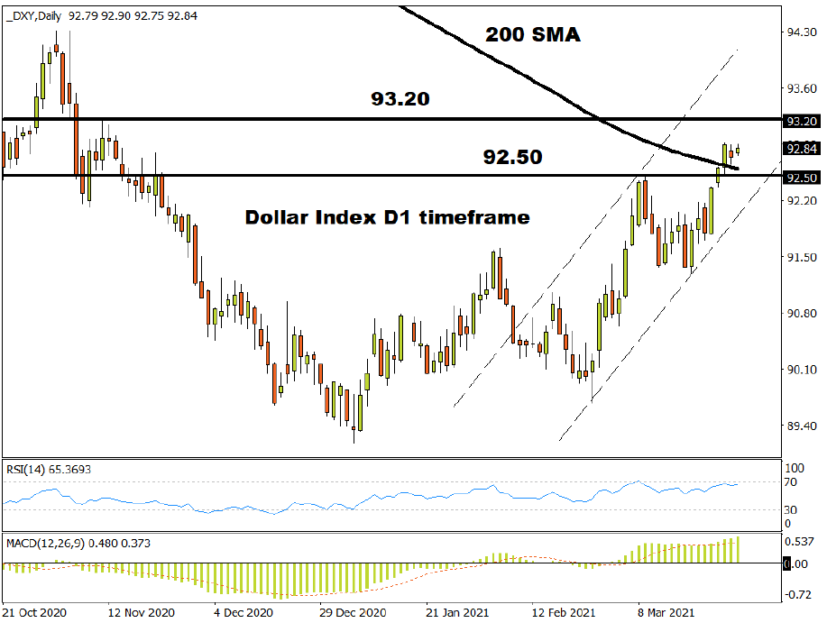 Looking at the technical picture, the Dollar Index is bullish on the daily timeframe. Prices are trading back above the 200-day moving average while the MACD is above 0. However, the Relative Strength Index is slowly approaching overbought territory. Should 92.50 prove to be reliable support, the DXY could make a move on 93.20. This technical setup is very much likely to be influenced by the US jobs data on Friday.