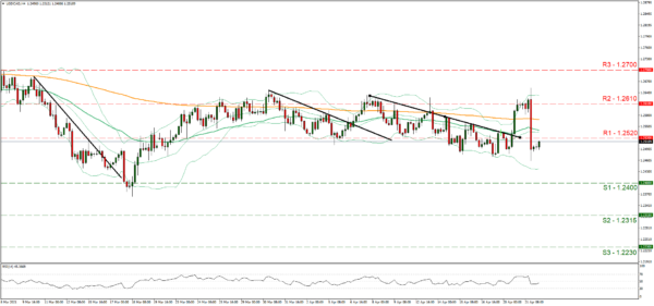 USD/CAD tumbled yesterday, after BoC’s interest rate decision, breaking the 1.2610 (R2) and the 1.2520 (R1) support lines, both now turned to resistance, before stabilising. We tend to maintain a bias for a sideways motion, yet at the same time the RSI indicator below our 4-hour chart is below the reading of 50 implying that the bears may have a slight advantage. Should the bears actually remain in charge of the pair’s direction, we may see USD/CAD aiming if not breaking the 1.2400 (S1) support line which was last tested on the 17th of March and held its ground. Should the buyers gain control with their bid, we may see the pair breaking the 1.2520 (R1) resistance line and aim for the 1.2610 (R2) level which overall tended to confine the pair’s price action to the upside since the 24th of March.