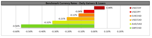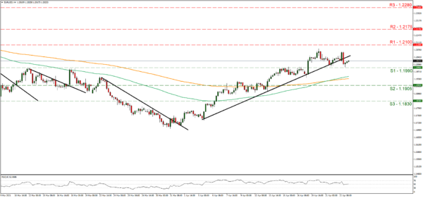 The USD maintained a largely sideways motion against a number of its counterparts yesterday, despite the better than expected weekly initial jobless claims figure, which may have indicated a tightening of the US employment market. On the other hand, the euro had losses against USD, JPY and CHF, but not the pound caused primarily by the ECB’s dovish stance as expressed by its President Christine Lagarde in her press conference. The ECB President underscored that rising coronavirus vaccination rates and an improving economic outlook are positive signals, yet implied that the tapering of its PEPP program was premature currently. We expect traders to day to focus on the preliminary release of the Markit PMIs for April, as the indicators could imply a differential in the expansion of economic activity in various economies, while EUR traders may also keep an eye out for Lagarde’s speech today. EUR/USD dropped yesterday testing the 1.1990 (S1) support line, yet the overall movement seems to have stabilised the pair’s price action. As the pair broke the upward trendline incepted since the 5th of April, we switch our bullish outlook in favour of a sideways movement for the time being. Currently the RSI indicator below our 4-hour chart seems to be running along the reading of 50, implying a rather indecisive market. Should the pair find fresh buying orders, we may see EUR/USD aiming if not breaking the 1.2100 (R1) resistance line, thus paving the way for the 1.2175 (R2) level. Should a selling interest be displayed by the market, we may see EUR/USD breaking the 1.1990 (S1) support line and start aiming for the 1.1905 (S2) support level.