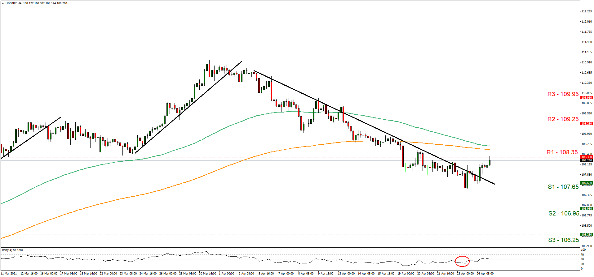 Resistance: 108.35 (R1), 109.25 (R2), 109.95 (R3)