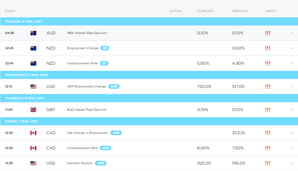During the upcoming trading week the release of the April US Non-farm payrolls job report and the ISM Manufacturing report headline the economic docket. The US jobs report is expected to show another improvement from the previous months number, with economists forecasting that the US economy created 925,000 jobs last month. The ISM manufacturing headline number is also going to be closely followed by market participants this week as the report is expected to show more strong economic activity.