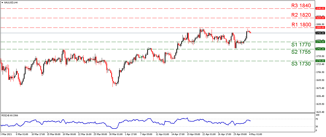Gold ascended and attempted the (R1) 1800 resistance level but failed to clearly reach it. However, the (R1) 1800 level is a very considerable level for traders not only due to the fact that it’s a round number but also because it was tested various times in April but the bulls retreated eventually. This is also a sign that it is a major challenge for the buyers while a move higher than that can send the yellow metal to the (R2) 1820 hurdle. At the top, we have placed the (R3) 1840 resistance level which was last seen in February. In the opposite direction and from a selling perspective the first level possibly found lower is the (S1) 1770 support level. Lower than that the (S2) 1755 support line that was tested in the past week is also imminent. Lower the (S3) 1730 is our lowest level for this report and can be a target in an extensive selling environment for Gold. At the moment the RSI has moved higher but remains below the 70 level showing signs of some bullish interest being present.