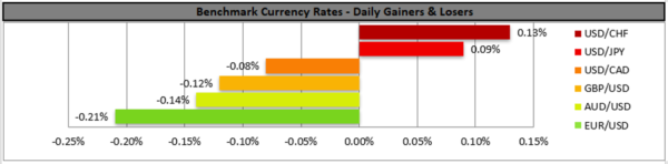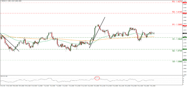 GBP/USD remained in a tight range bound movement, between the 1.3845 (S1) support line and aim for the 1.3990 (R1) resistance line. We maintain our bias for a sideways movement, given that the main body of the pair’s price action has remained between the prementioned levels since the 19th of April. Should the bulls take over, we may see the pair breaking the 1.3990 (R1) resistance line and aim for the 1.4145 (R2) resistance level. Should the bears take over, we may see the pair breaking the 1.3845 (S1) support line and aim for the 1.3700 (S2) support level.