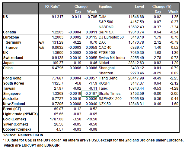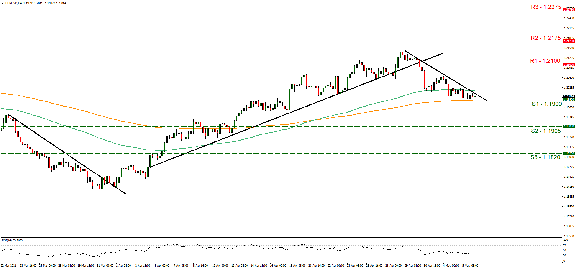The USD remained relatively stable near a two-week high level against a basket of its counterparts, while the market’s attention seems to focus on US employment data released today and tomorrow. It should be noted that yesterday the ADP employment figure for April rose substantially yet failed to meet the market’s expectations, while on the contrary April’s ISM PMI reading for the services sector outperformed market expectations. Also please bear in mind that surrounding USD’s fundamentals are also the tensions in the relationships between the US and China which may escalate further, given the recent G7 meeting. Also please note the recent tensions that arose between China and Australia. On the monetary front, Fed Officials continued to sound dovish and its characteristic that Chicago Fed President Evans stated that he expects the Fed’s monetary policy to remain loose despite the improved economic outlook and the swift recovery. We expect Fed officials to continue to sound dovish also given the bank’s loose monetary policy.