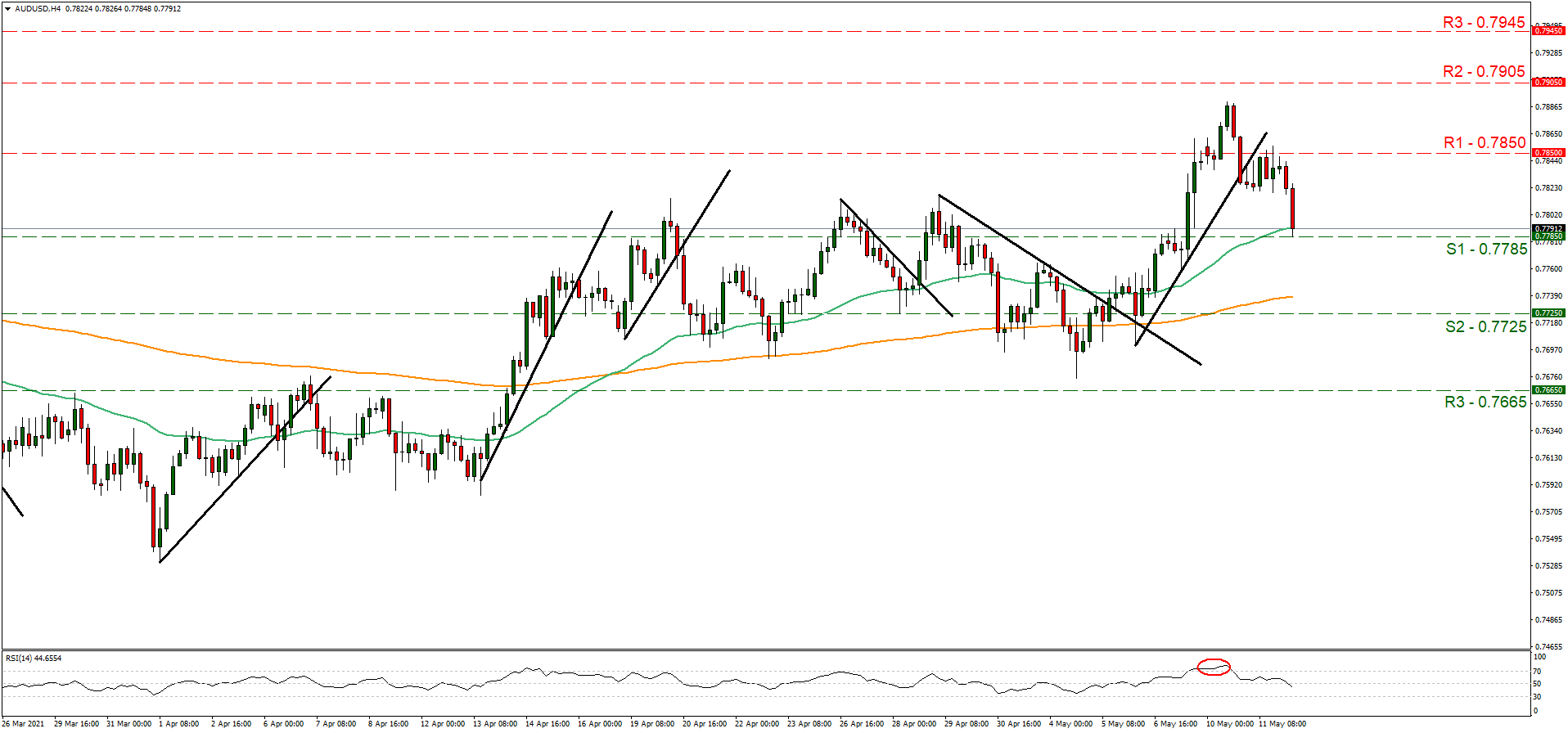 USD remained at rather low levels yesterday yet stabilized and even had some small gains against its counterparts yesterday. The market is still focused on the Fed’s intentions and whether it plans to tighten its monetary policy through its asset purchases program mainly and April’s US inflation rates which are due out later today are in the epicenter of the market’s attention. For the time being the Fed seems to stick to its ultra loose monetary policy and its characteristic that Fed Governor Brainard stated yesterday that weak labour data released last week for April, show that the recovery has a long way to run. Yet should inflation rates accelerate more than forecasted, especially on a year on year level, we may see the USD getting some support as the pressure on the Fed could increase. Also note that things weren’t so rosy in the US equities markets, given that Dow Jones tumbled, while in the FX market the effect seems to be bigger on commodity currencies such as AUD.
