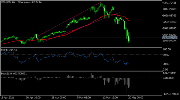 The ETH/USD pair declined to a low of 1,926, the lowest level since April this year. This price was substantially lower than the all-time high of more than 4,300. On the four-hour chart, the pair has dropped below the 25-day and 50-day moving averages while oscillators have also declined. The bears power has also remained below the zero line. Therefore, while the pair may keep falling, there is a possibility that a relief rally will happen in the near term.