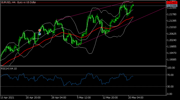 The EUR/USD pair is trading at 1.2228, which is slightly below the key resistance at 1.2245. On the four-hour chart, the pair is slightly above the middle line of the Bollinger Bands. It is also being supported by the 25-day moving average. Also, the pair is slightly below the upper side of the ascending channel that is shown in pink while the Relative Strength Index (RSI) is slightly below the overbought level. Therefore, the pair’s bullish trend will be confirmed if bulls manage to move above 1.2245, which is the YTD high.