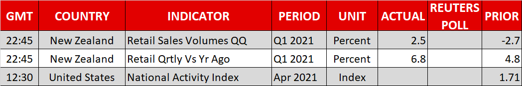 In particular, the Federal Reserve is under intense scrutiny as policymakers have yet to begin the great taper debate even though the US recovery is the most solid among the big economies and the consumer price index has soared above 4% y/y. Investors will be on the lookout for fresh remarks on tapering by the Fed’s Brainard, Mester and George, who are due to speak later today, as well as awaiting the most important inflation metric – the core PCE price index – that’s out on Friday.