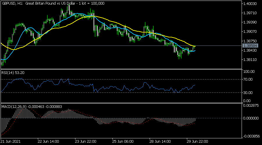The GBPUSD pair rose slightly to 1.3857 above yesterday’s low of 1.3813. On the hourly chart, the pair has moved above the 25-day and 15-day moving average. The Relative Strength Index (RSI) has moved from 30 to 52. The signal and histogram of the MACD have moved below the neutral level. The pair will likely keep rising as bulls target the next key resistance at 1.3900.
