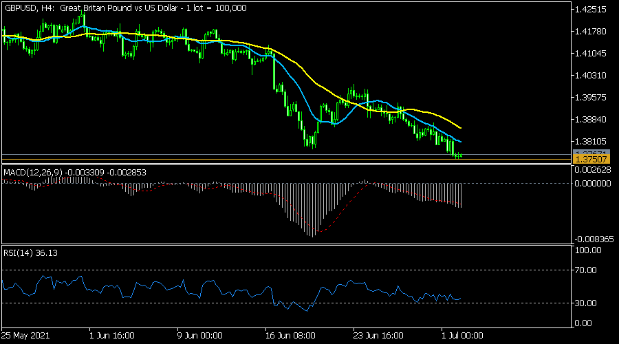 The GBPUSD pair declined to a low of 1.3750, which was the lowest level since the first week of April. The pair has moved below the short and longer-term moving averages and the important support at 1.3783. The MACD has moved below the neutral line while the RSI is slightly above the oversold level. Therefore, the pair will likely keep falling as bears target the next support at 1.3700.