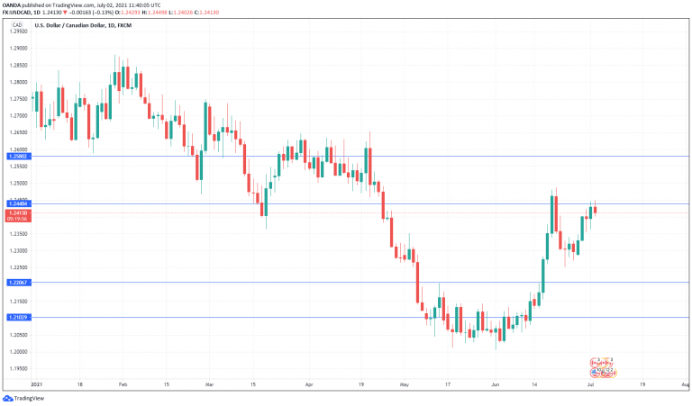The Canadian dollar has posted slight losses on Friday. In the North American session, USD/CAD is trading at 1.2408, down 0.17% on the day. The US dollar is on an upswing and USD/CAD has gained 0.95%, as the pair has erased most of the losses from a week earlier.
