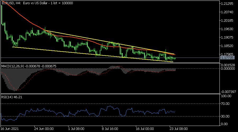 The EURUSD pair is little changed ahead of the German sentiment and US new home sales numbers. It is trading at 1.1775, where it has been in the past few weeks. On the four-hour chart, the pair has formed a falling wedge pattern, which is usually a bearish sign. Oscillators like the Relative Strength Index (RSI) and the MACD are at the neutral level. Therefore, the pair will likely remain in the current range as investors wait for the FOMC decision scheduled for Wednesday.