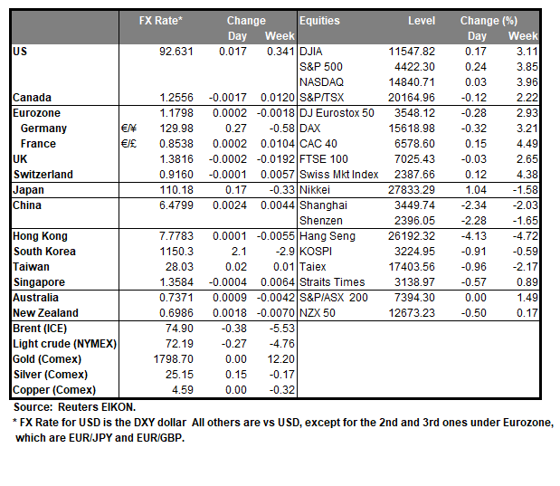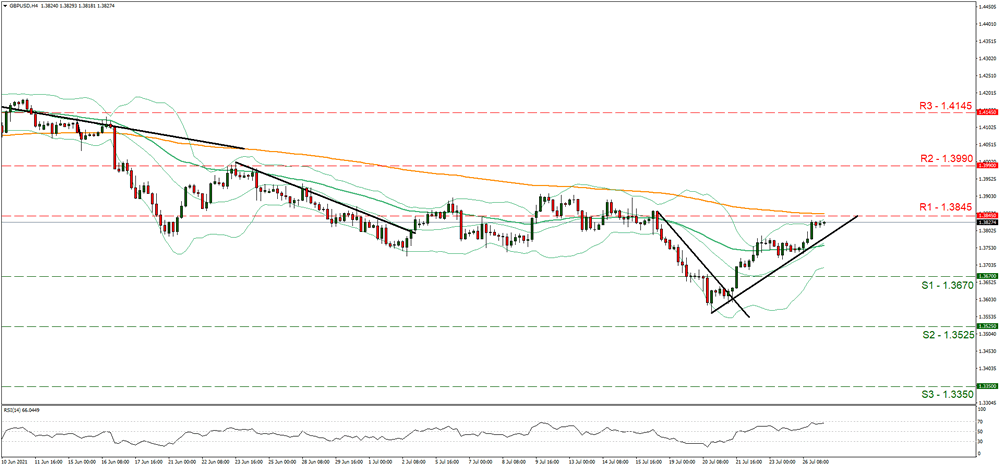 The pound gained against the USD however also against the EUR,CHF and JPY yesterday and may have enjoyed some support from the comfort that UK’s vaccinations are at high numbers while at the same time the Delta variant is high on a global level. The number of new cases per day has dropped for a sixth consecutive day enhancing hopes that the worst of the fourth wave is over yet officials seem to remain somewhat cautious. On the monetary front, BoE’s Vlieghe stated yesterday that the bank should not scale back its QE program for “several quarters at least and probably longer” which tended to predispose the markets for a possible dovish tone of the bank at its meeting next week. Despite some UK financial releases are due out today, we tend to maintain the view that fundamentals could lead the pound.