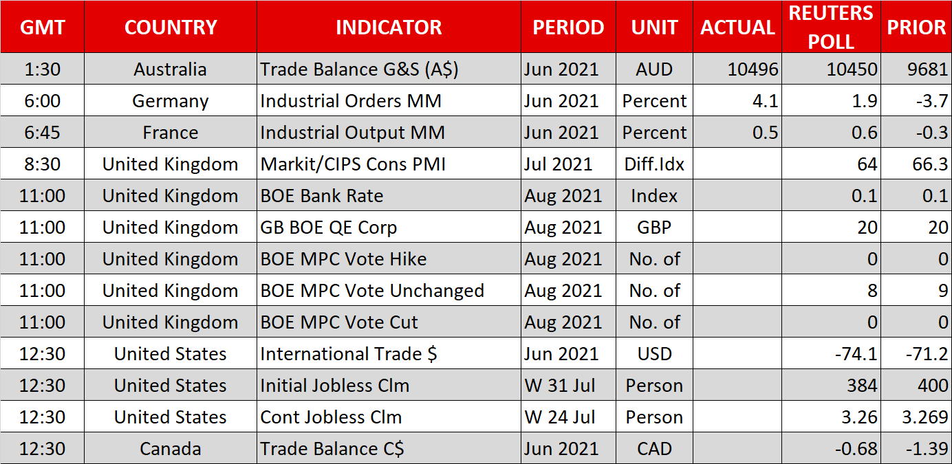 As for the dollar, this is great news. The Fed is slowly but surely setting the stage for dialing back stimulus. For now, everything hangs on tomorrow’s nonfarm payrolls. The labor market needs to come back in spectacular fashion for the Fed to take the next step soon.