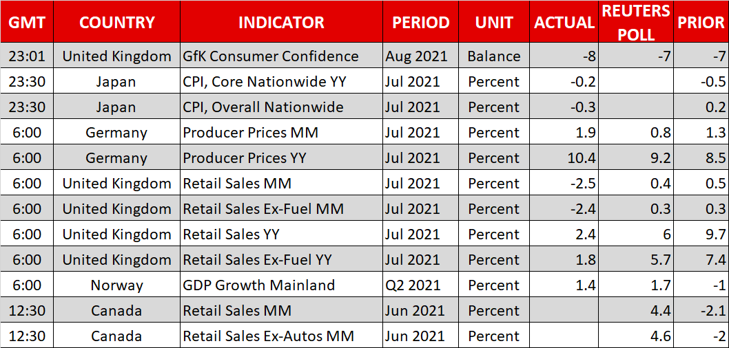 The calendar is almost empty today, with the only noteworthy release being Canada’s retail sales for July. It has been a tremendously difficult week for the loonie despite the nation’s inflation rate rising further, as the currency realigned itself with suffering oil prices.