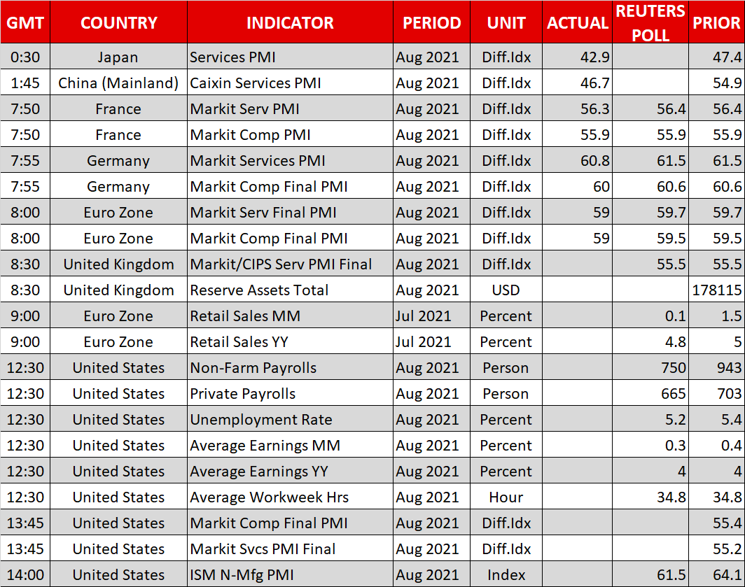Wall Street closed a shade higher on Thursday, with a little help from expectations for a soft US jobs report that delays the Fed’s normalization plans. Interestingly enough, markets shrugged off some remarks from Senator Joe Manchin that the Democrats should “pause” their efforts on the $3.5 trillion reconciliation bill, citing soaring debt levels and accelerating inflation.
