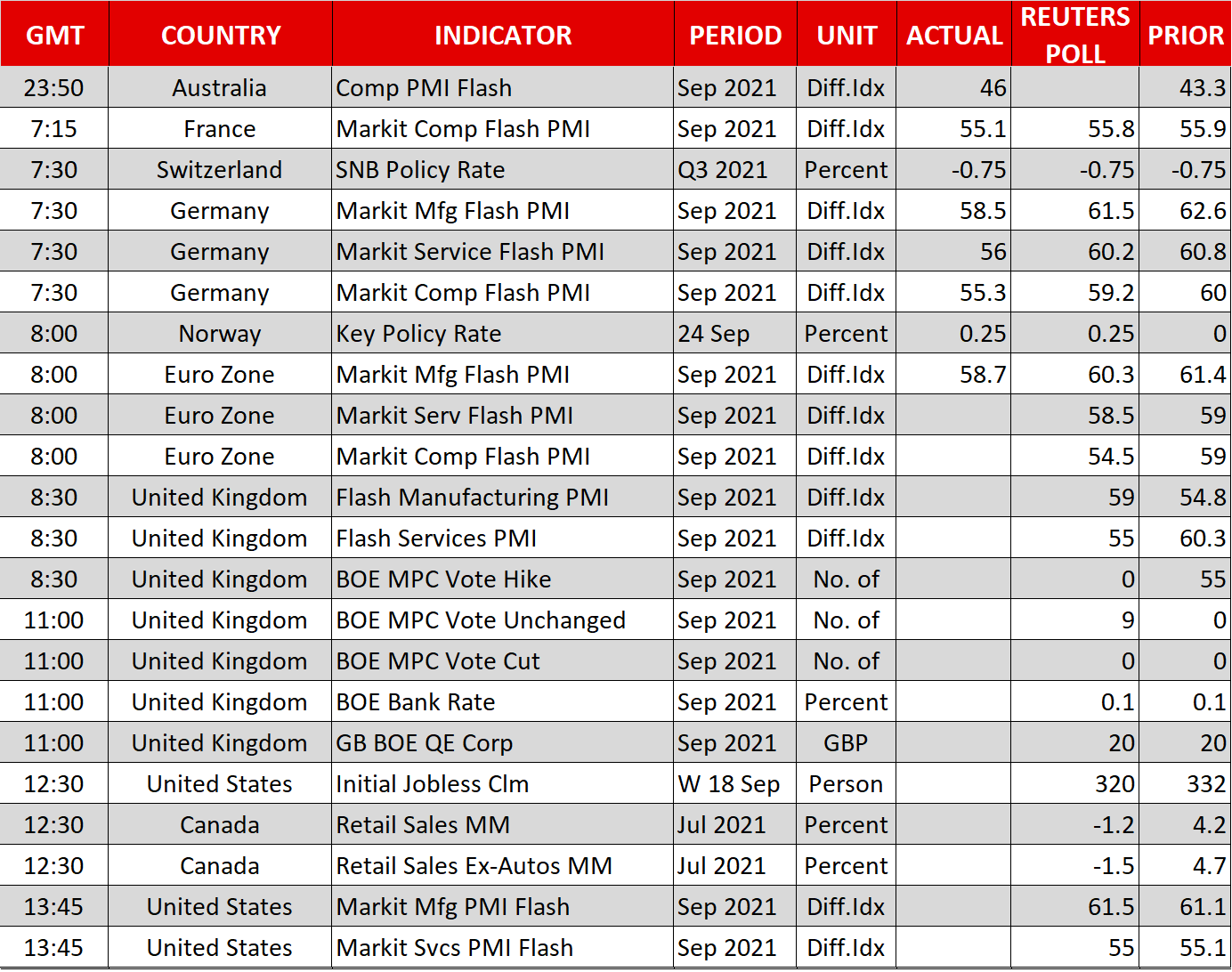 Sterling was also on a steadier footing ahead of the Bank of England policy decision at 11:00 GMT. There’s a risk the BoE will cut the target of its asset purchases from the current £895 billion and pave the way for a rate hike in the first half of 2022. But investors aren’t as optimistic about the outlook given that the UK is facing a much more severe energy and supply shortages crisis than other countries.